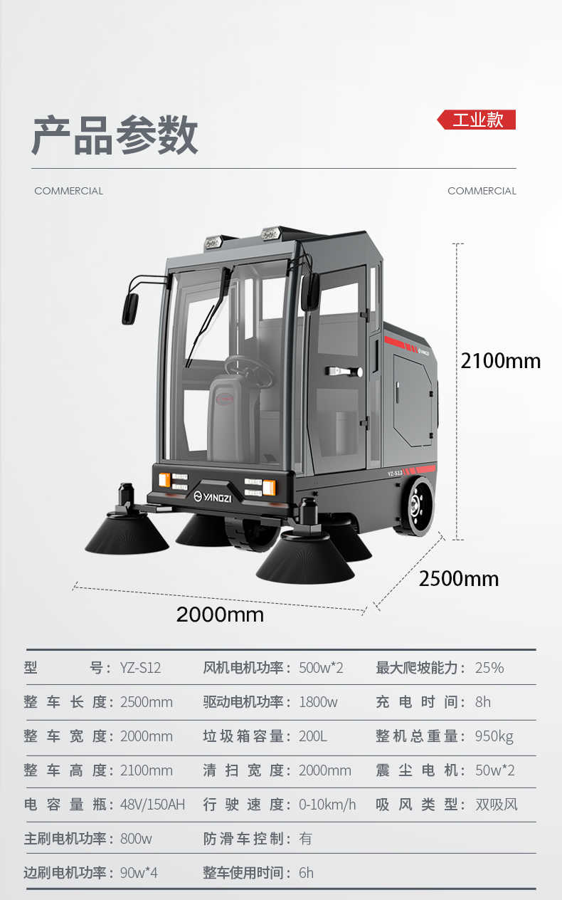 揚子YZ-S12駕駛式掃地車,清掃車,廠家直銷,省30%成本,工作時間:6h,重量:950kg,效率:24600m2/h,大于10人工作效率,干凈不留痕,免費試機,買貴包退.專業(yè)的售后團(tuán)隊,免費上門指導(dǎo)操作和維護(hù).揚子YZ-S12分普通款和鋰電款,想進(jìn)一步了解,請咨詢在線客服或撥打官方免費熱線,客服詳細(xì)解答產(chǎn)品參數(shù)和最新活動價格